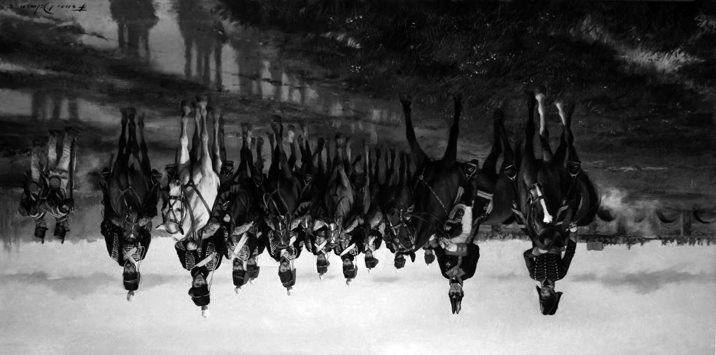 – Cabecera: cuadro volteado Batalla de Vitoria (1813). El General Álava, con el 15º de Húsares del Ejército británico, junto al puente de Trespuentes. Oleo de Augusto Ferrer-Dalmau