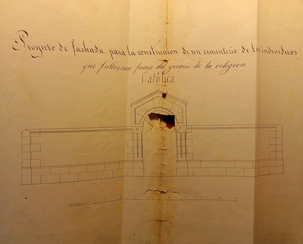 Por apuntalar esta última frase, sabemos que hacía 1871-1872 dieron comienzo las gestiones para tomar “la parte del terreno contiguo [al cementerio] que se considere necesaria”, a fin de enterrar a quienes mueren perteneciendo a religión distinta de la católica. Esta apertura guarda seguramente relación con el momento que atravesaba el país. En 1869, tras la revolución ‘Gloriosa’, se había redactado una nueva constitución en la que, por vez primera, se reconocía que la libertad religiosa constituía uno de los derechos fundamentales de los españoles. Hasta entonces, ser español y católico resultaba inseparable.