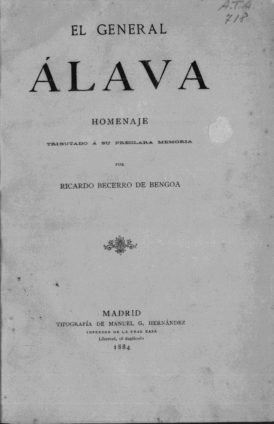 En junio de 1884, como gesto de agradecimiento por la misión iniciada por el Ayuntamiento, Ramon Arriola decidió donar al consistorio una faja de teniente General “que religiosamente he conservado hasta ahora en el estado en que se hallaba al fallecimiento del ilustre”. La alcaldía decidió colocar tan preciado objeto en el Salón de Sesiones. Y planteó un traslado con todos los honores militares, pero también con la celebración de honras y sufragios fúnebres, considerándolo un “ejemplo digno de imitarse”. Además, apuntaban la necesidad de difundir y conocer su biografía y, para suplir esa carencia a nivel popular, la ocasión fue aprovechada por el mismísimo Ricardo Becerro de Bengoa. Ese mismo año vio la luz en Madrid el texto que el intelectual vitoriano dedicó a su figura: El General Álava: homenaje a su preclara memoria.