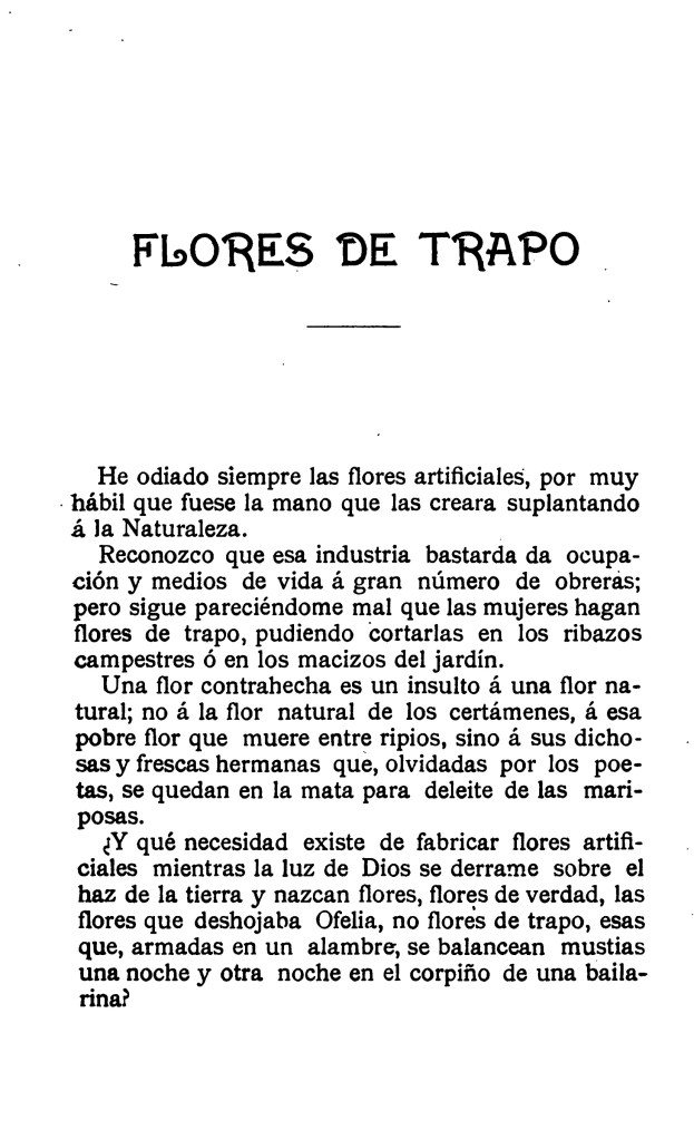 Como hemos apuntado al comienzo, en esta ocasión recuperamos únicamente uno de sus cuentos, “Flores de trapo”, en el que un personaje que aborrece las flores artificiales sufre una pequeña revelación.