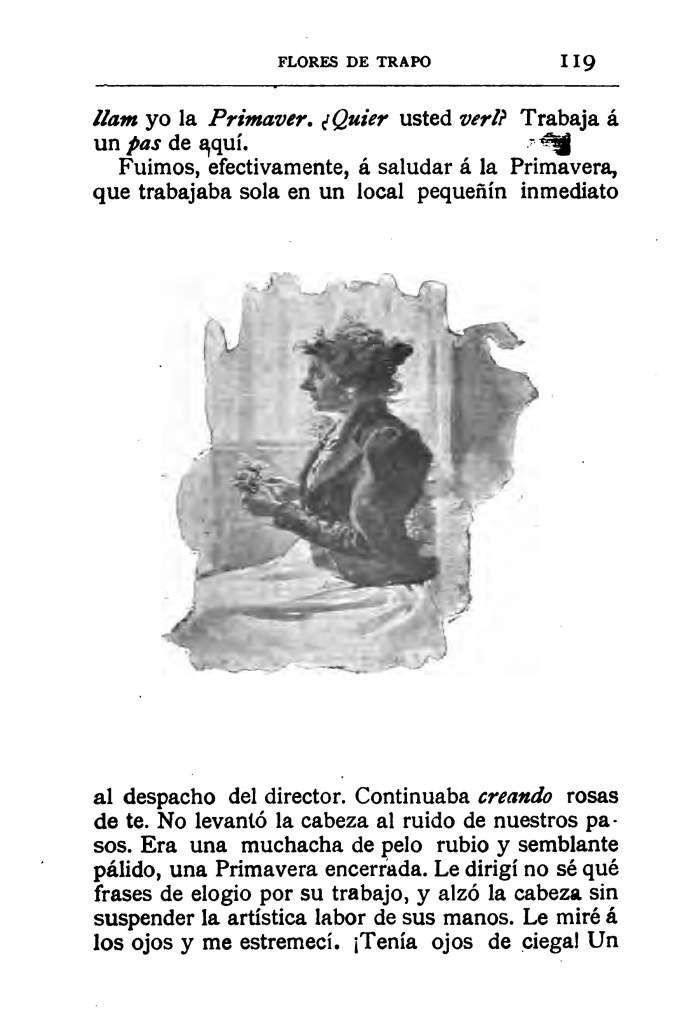 Ese ímpetu juvenil se fue perfilando y, tras estudiar derecho y periodismo, se terminó convirtiendo con el paso de los años en escritor con “un puesto de honor entre los más delicados cuentistas españoles”. En este sentido, la inmensa mayoría de su producción escrita vio la luz en la prensa, y sus cuentos alcanzaron popularidad en las páginas de la mítica revista ilustrada Blanco y Negro. Además del volumen ya referido, publicado bajo el auspicio de la Biblioteca Bascongada de Fermín Herrán, vieron la luz dos compilaciones más de escritos: Cuadros de género (1888) y Cuentos madrileños (1902). En esta última antología es donde nos topamos con “Flores de trapo”, el cuento que transcribiremos enseguida.