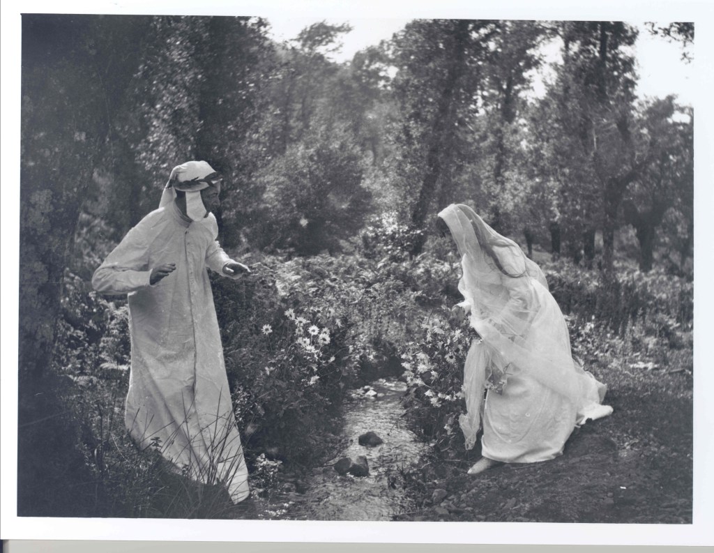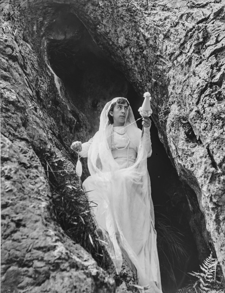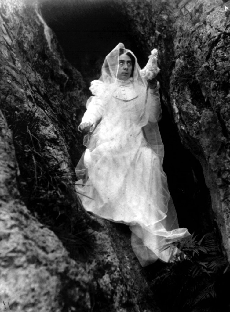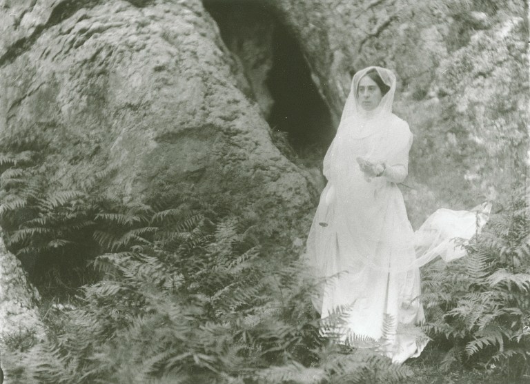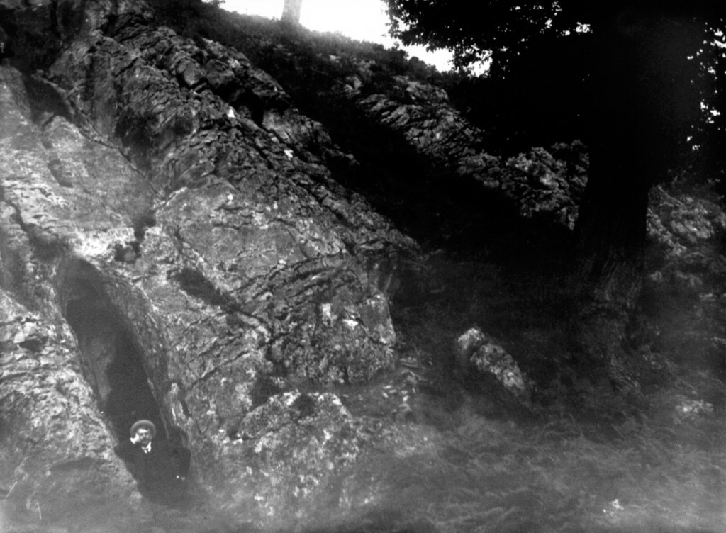 Lo más curioso es constatar que en la colección de Baraibar-Elorza hay bastantes más recreaciones teatralizadas, pudiendo al menos identificar otros tres escenarios bien diferenciados. En primer lugar, nos topamos con la siguiente sucesión de fotografías en las que una mujer emerge de una cavidad: