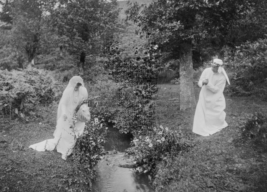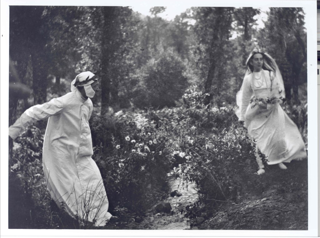 Lo cierto es que en varias de sus fotografías nos topamos también con un regusto teatral acusado. Abundan los disfraces, los posados en ubicaciones caprichosas, o incluso los desnudos femeninos. Y entre todas ellas, fue toda una sorpresa encontrar la siguiente secuencia de seis imágenes: