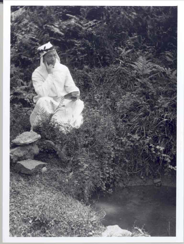 Antes de despedirnos, y en vísperas del carnaval vitoriano –al que nos asomamos en una entrada anterior-, un par de fotografías del propio Baraibar con barba postiza y actitud meditativa. Desde luego, es un personaje inmenso, implicado en mil y un frentes, y por el que resulta fácil sentir cierta simpatía tras verle en muchas de las fotografías más íntimas, desenfadadas o divertidas de su colección. Quizás futuros estudios puedan alumbrar mejor esta faceta teatral de su vida, en los que parece querer encarnar y dramatizar alguno de sus campos preferenciales de interés y estudio.