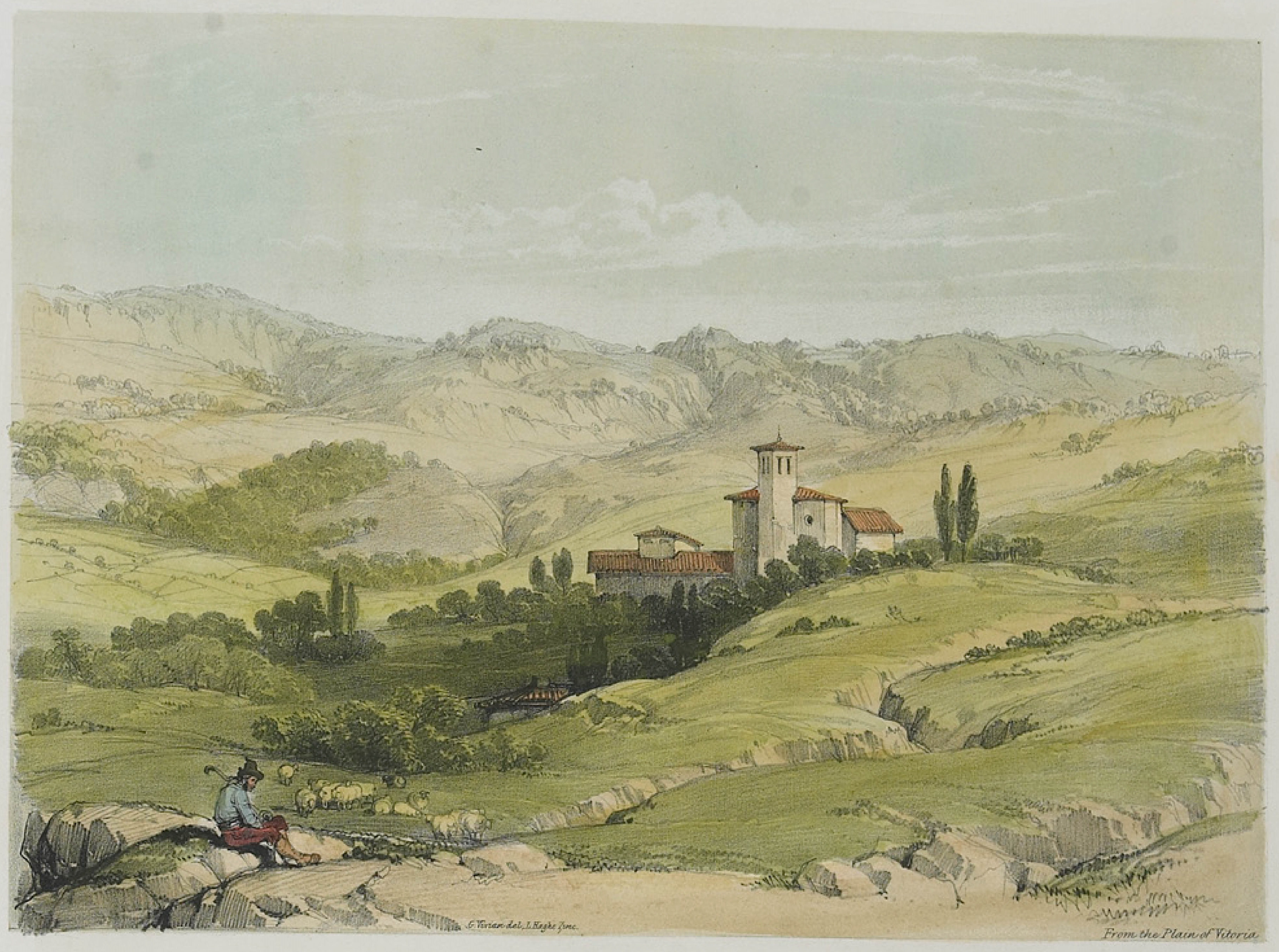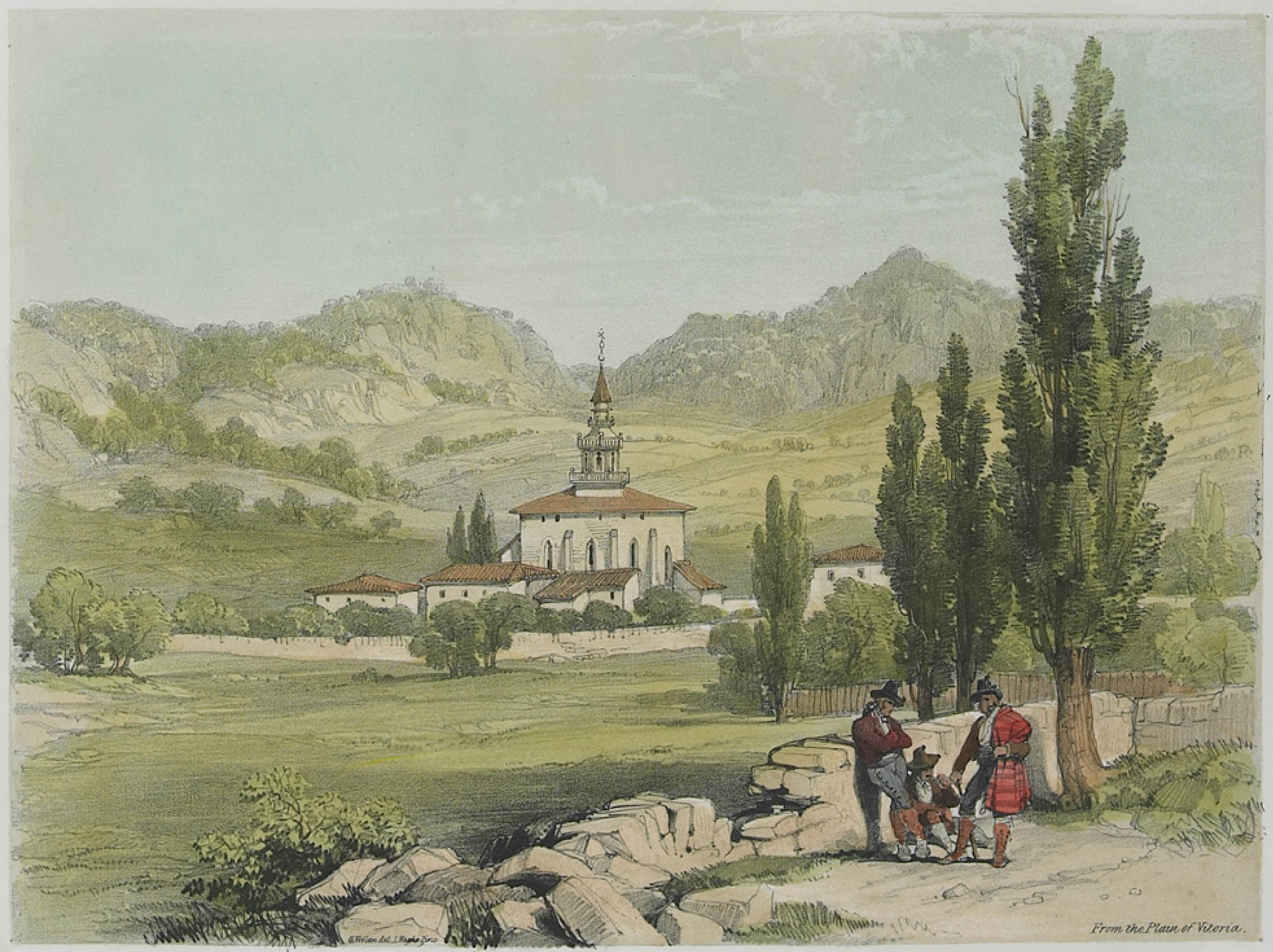 Aunque la devoción al santo se encuentra sumamente diseminada por toda la provincia, no son muchas las opciones disponibles cerca de la capital alavesa. Y, además, cabe hacerse otra pregunta: ¿Vivian incluye a Vitoria y alrededores por partida tripe en su álbum por alguna razón? Es probable que en su viaje el artista británico tuviera presente la Peninsular War [Guerra de la Independencia Española], e identificara lugares señalados en el desarrollo de la contienda(3). De este modo, quizás se interesase particularmente por los entornos de la Llanada donde transcurrió la batalla veinte años antes.