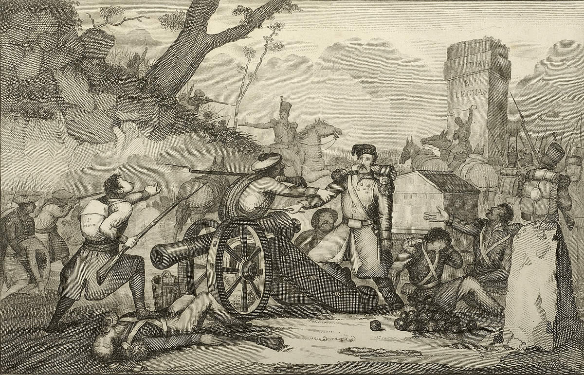 – Cabecera: Sorpresa hecha al Batallón de Gerona, cerca de Vitoria. Grabado incluido en la obra de Francisco Sainz «Panorama español, crónica contemporánea. Obra Pintoresca […]» (Madrid: Imprenta del Panorama Español, 1842).